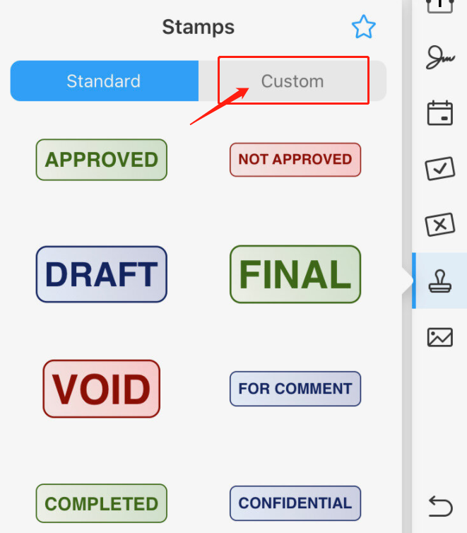 Then you will see the Custom Stamp option in the template window. Send Sign on Any Device. Tap on the Custom Stamp.